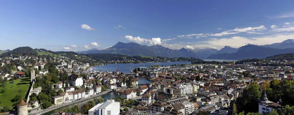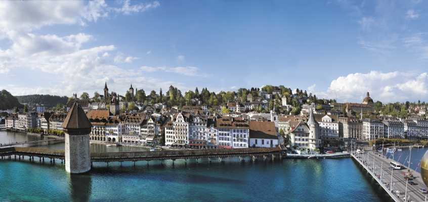Lucerna, Suíca A cidade situa-se a 436 metros de altitude, nas margens do rio Reuss e banhada pelo Lago dos Quatro Cantões. Lucerna possui muitas indústrias: metalúrgica, química, têxtil, madeireira e de aparelhos elétricos. A cidade é também um dos principais centros turísticos do país e sede de festivais internacionais de música.