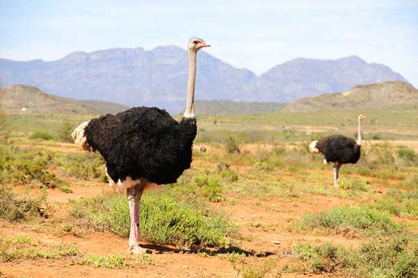 A pequena cidade Oudtshoorn fica no centro da província de Klein Karoo e faz parte da Rota dos Jardins (Garden Route), na qual há vinhedos e um destaque principal para a criação de avestruzes, que é a fonte de renda principal da região, com comércio de seus ovos, carne, couro e penas.